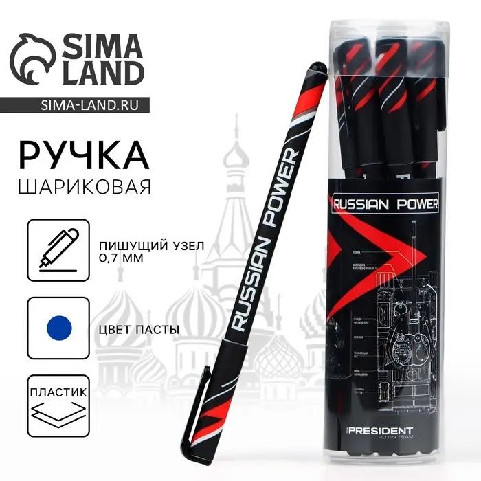 Ручка пластик с колпачком шариковая «Russian power», синяя паста, 0.7 мм