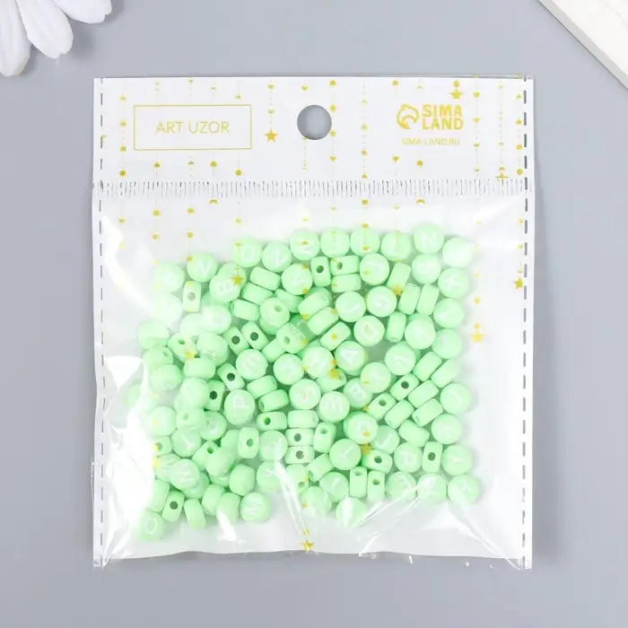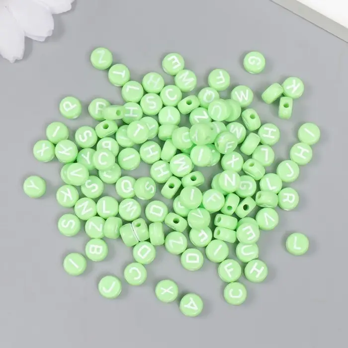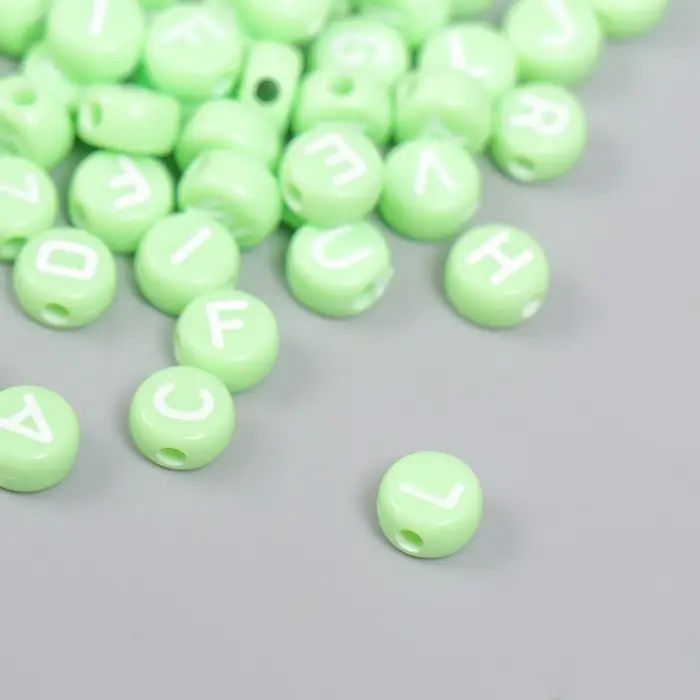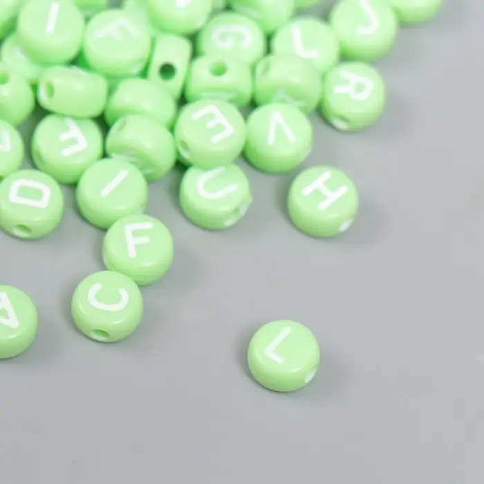 Бусины для творчества пластик "Английские буквы" зелёные набор 20 гр 0,4х0,7х0,7 см