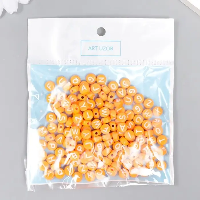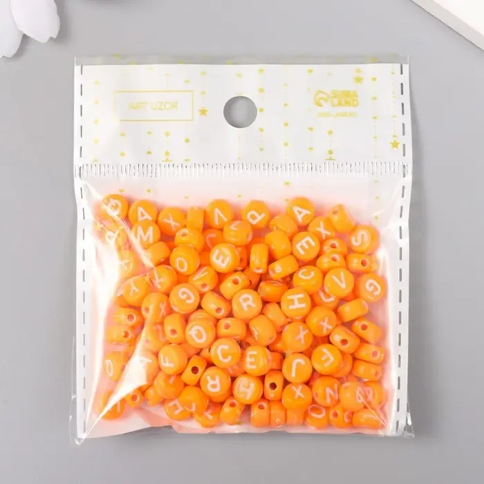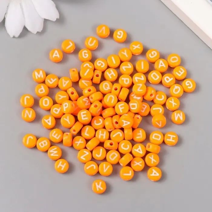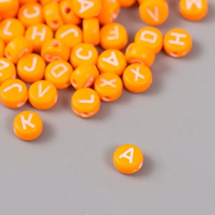 Бусины для творчества пластик "Английские буквы" оранж набор 20 гр 0,4х0,7х0,7 см