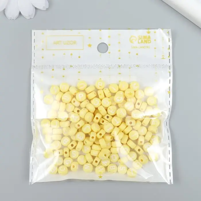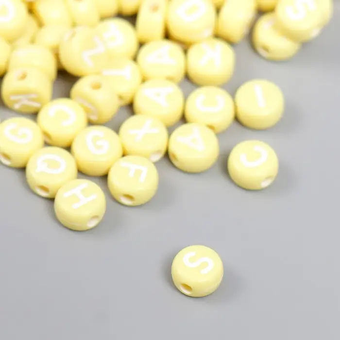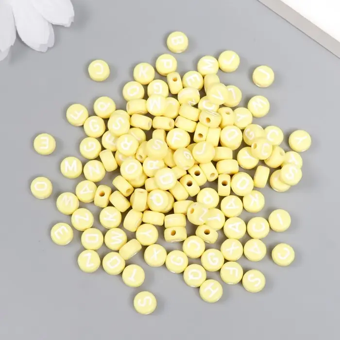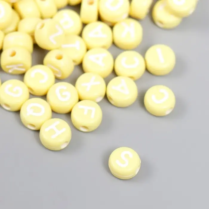 Бусины для творчества пластик "Английские буквы" жёлтые набор 20 гр 0,4х0,7х0,7 см