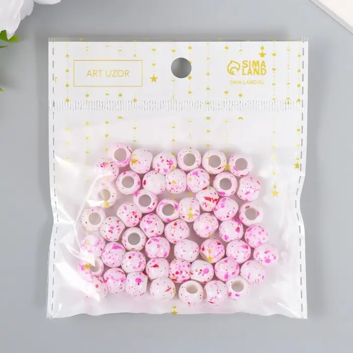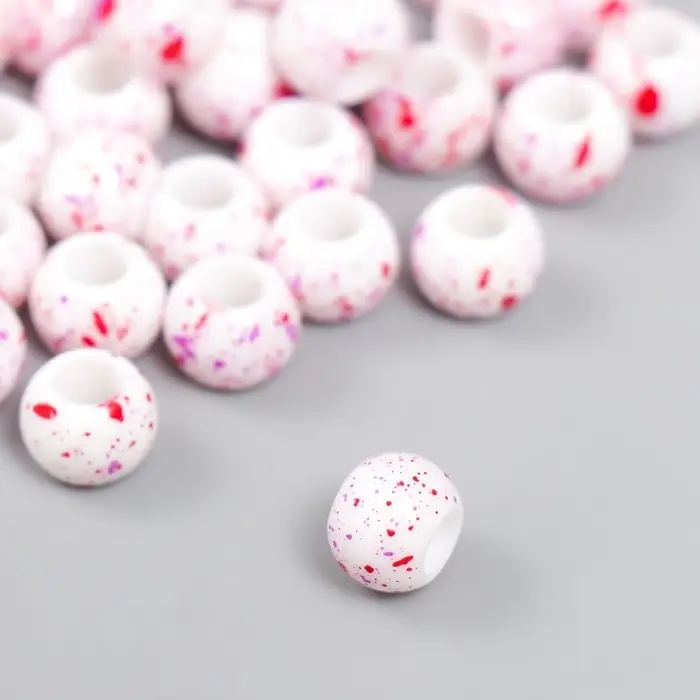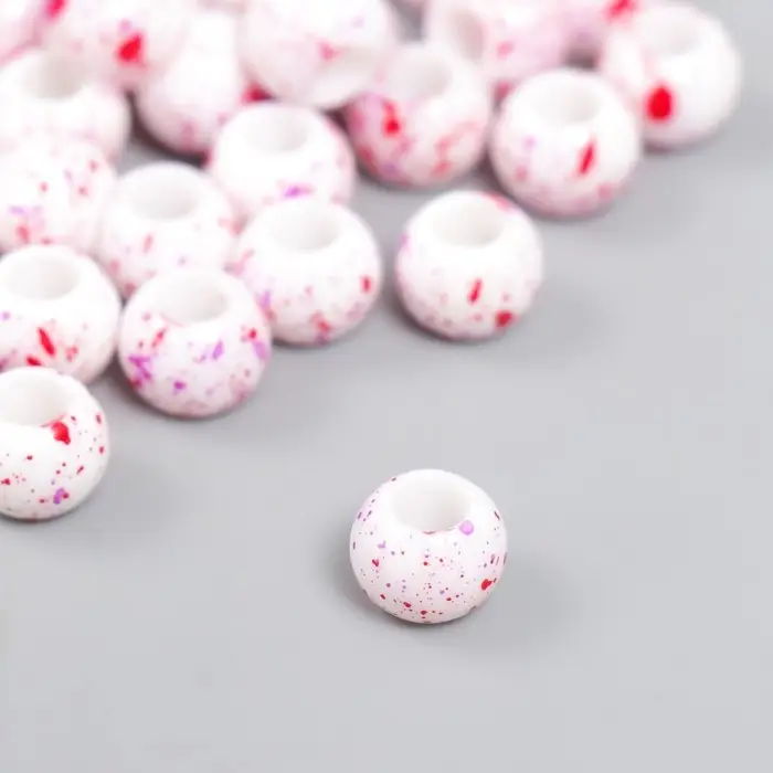Бусины для творчества пластик "Брызги краски. Фуксия на белом" d=1 см набор 20 гр