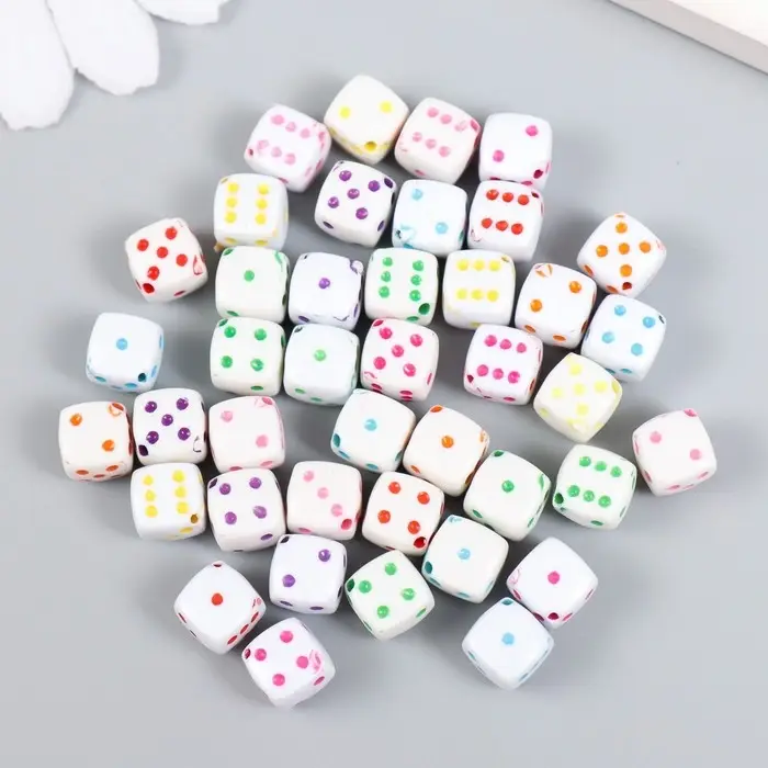 Бусины для творчества пластик "Белый игральный кубик" цветные точки набор 20гр 0,8х0,8х0,8см 78118