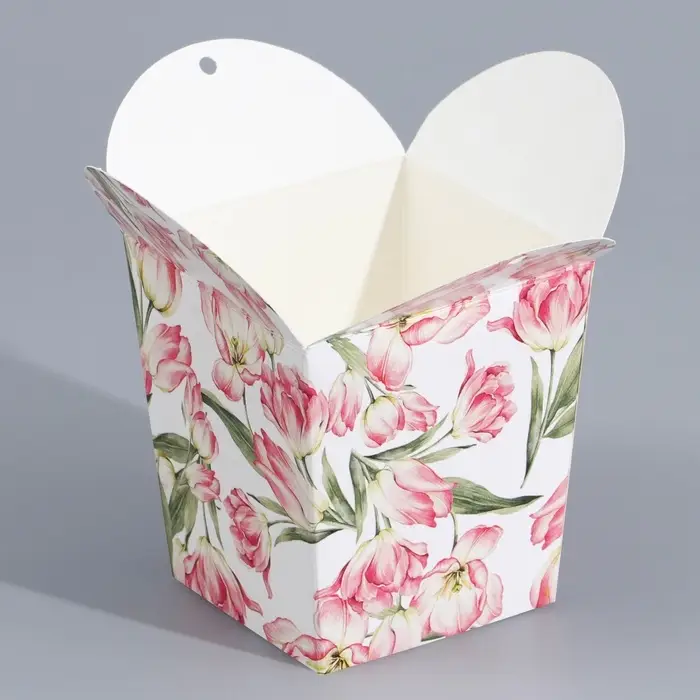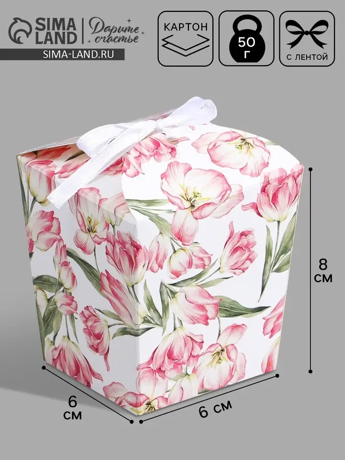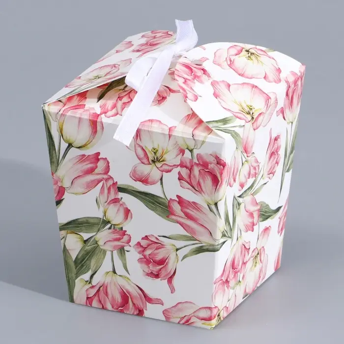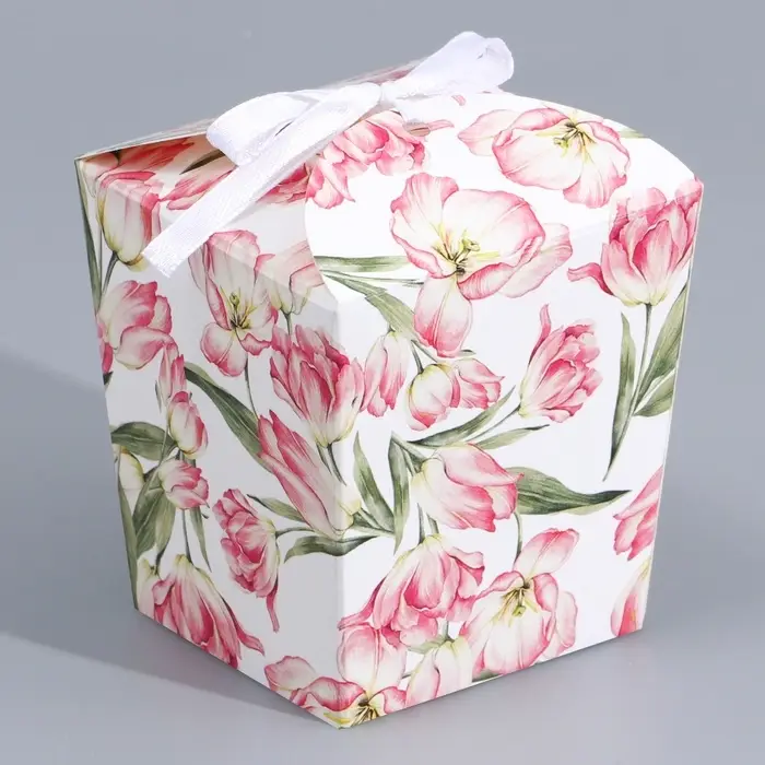 Коробка бонбоньерка, упаковка подарочная, «Цветы», 7.5 х 8 х 7.5 см