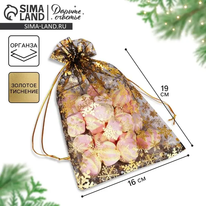 Мешочек подарочный органза «Золото», 16 х 24 см +/- 1.5 см