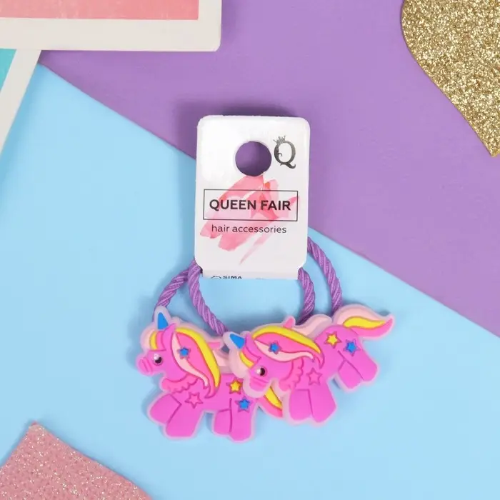 Резинка для волос "Крошка" (набор 2 шт) единорожек, сиреневый