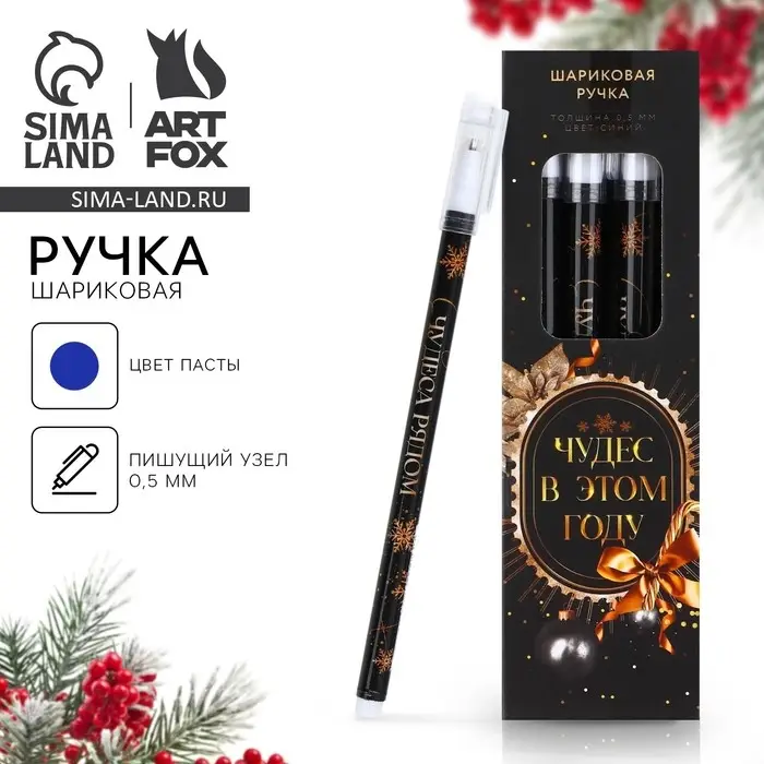 Ручка шариковая, синяя паста, 0.5 мм, пластик, с колпачком «Новый год: Чудес в этом году»