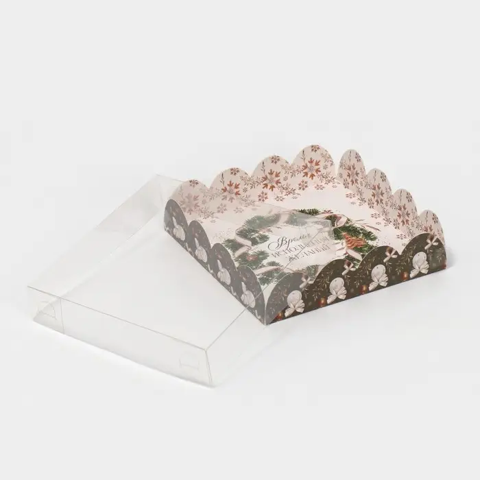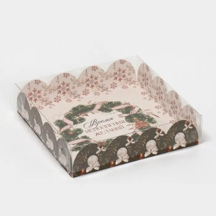 Коробка для кондитерских изделий с пластиковой крышкой «Время исполнения желаний», 13 х 13 х 3 с