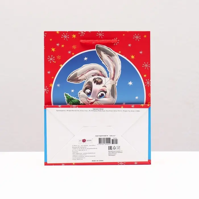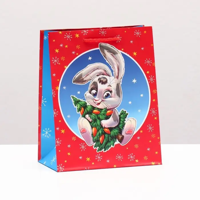 Пакет подарочный «Зайчик с ёлкой» , 18×22.3×10 см