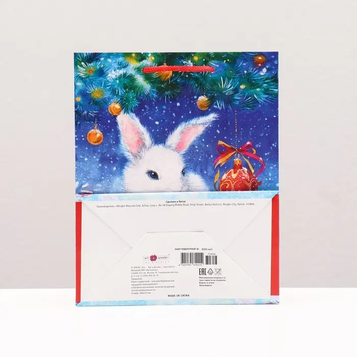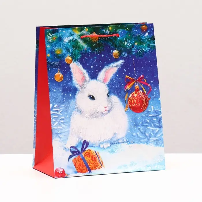 Пакет подарочный «Зайчонок в снегу» , 18×22.3×10 см