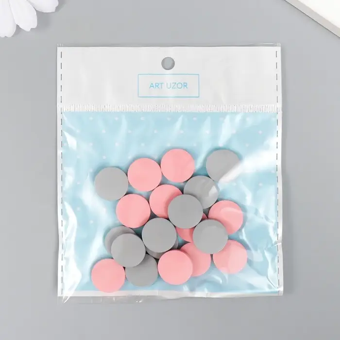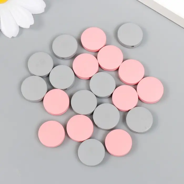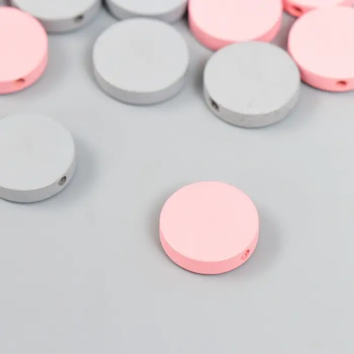 Бусины для творчества дерево "Плоский круг" набор 20 шт розовый, серый 0,4х1,5х1,5 см