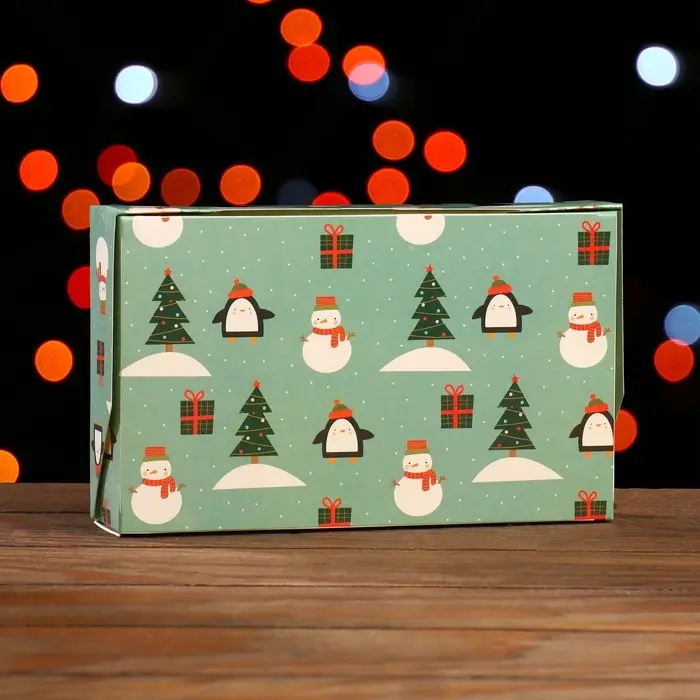 Коробка складная «Пингвины и снеговики», зеленая, 20×12×4 см