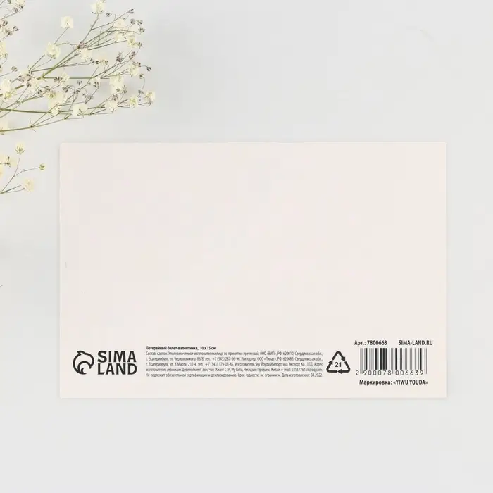 Открытка, лотерейный билет «Лотерея любви», 10×15 см