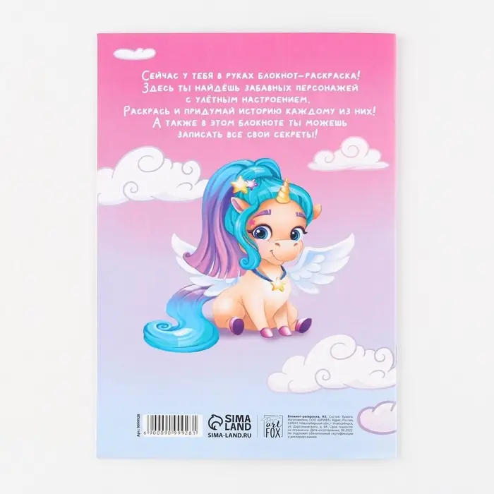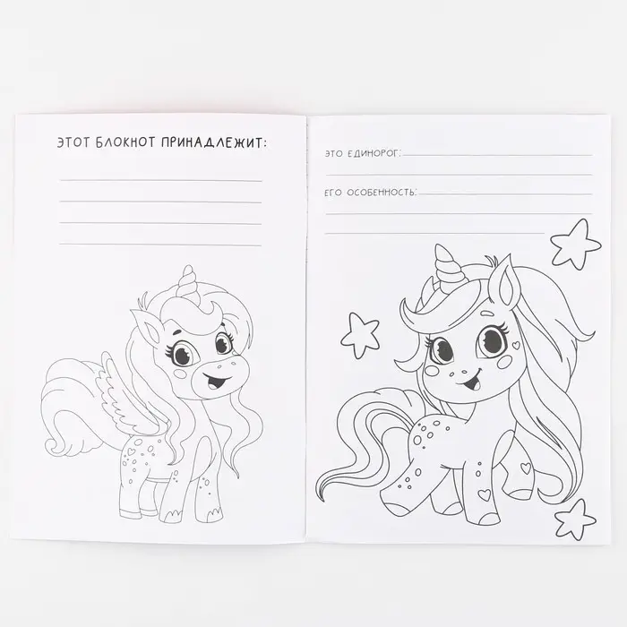 Блокнот раскраска «Единорог» на скрепке, А5, 8 страниц, мягкая обложка, плотность бумаги 65гр