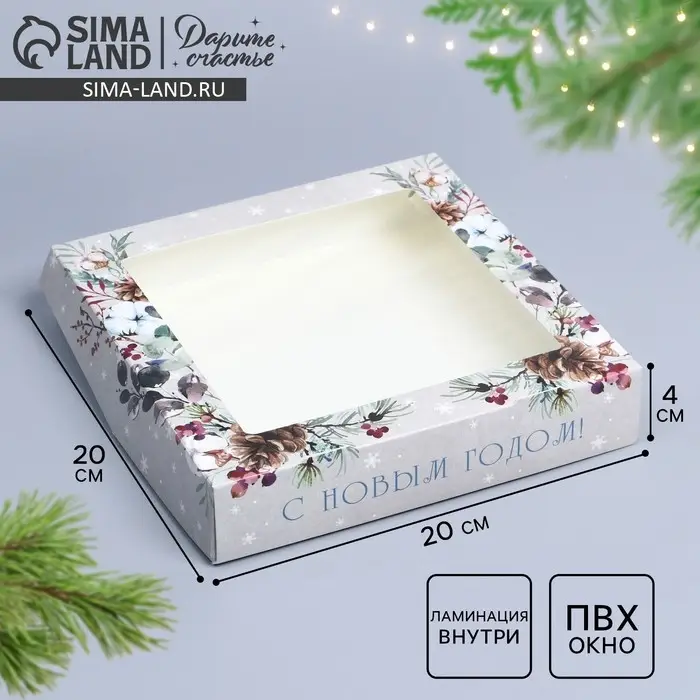 Коробка складная «Новогодний венок», 20 х 20 х 4 см