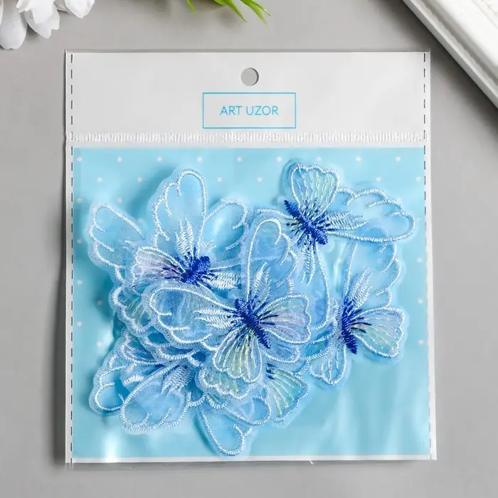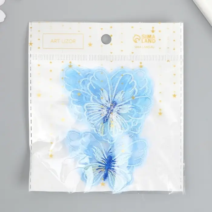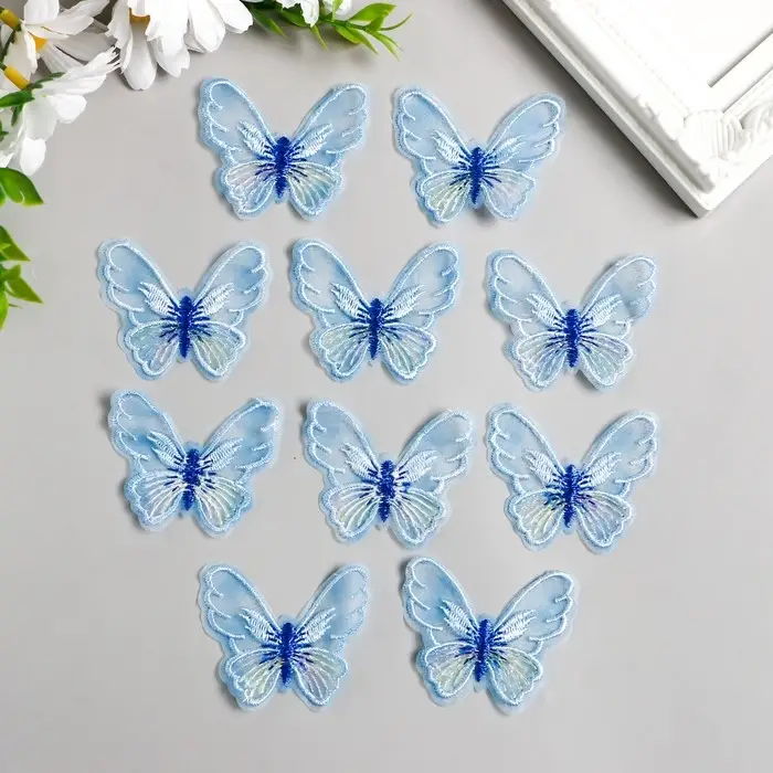 Декор для творчества текстиль вышивка "Бабочка голубая" 4,7х5,5 см