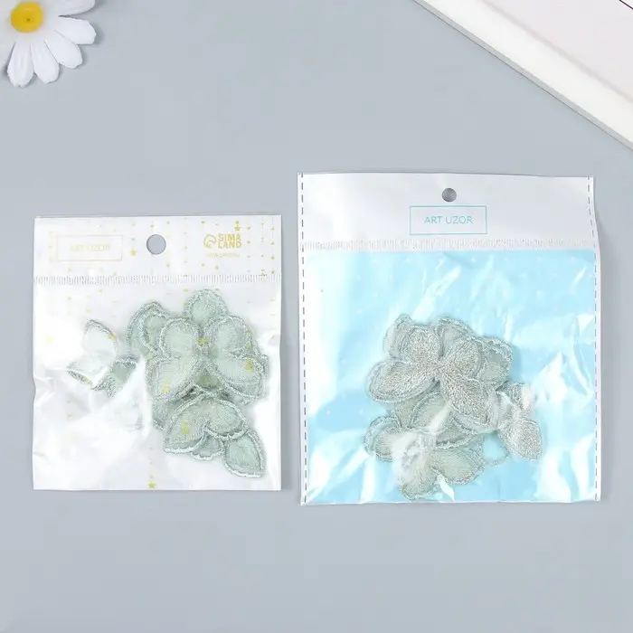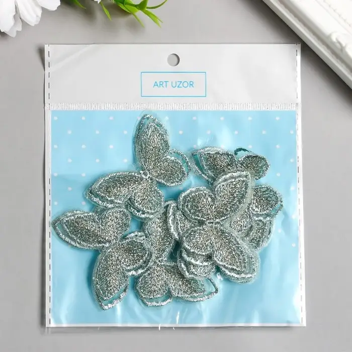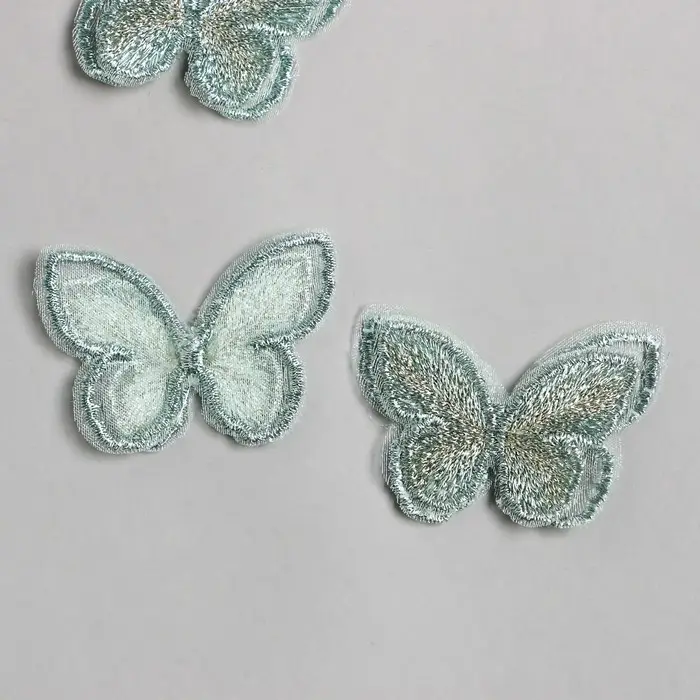 Декор для творчества текстиль вышивка "Бабочка зелёная" двойные крылья 3,7х5 см