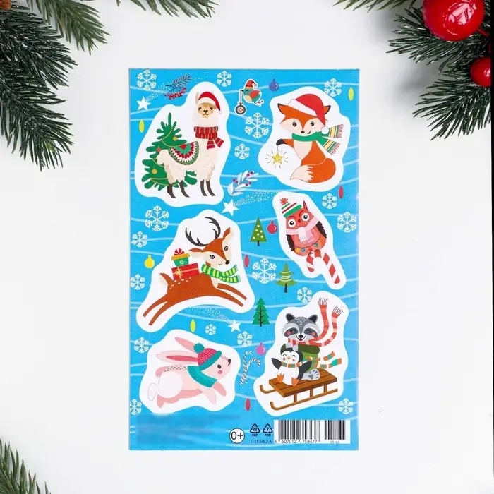 Наклейки новогодние «Лесные обитатели», 10×16 см