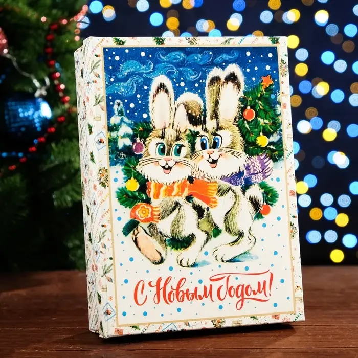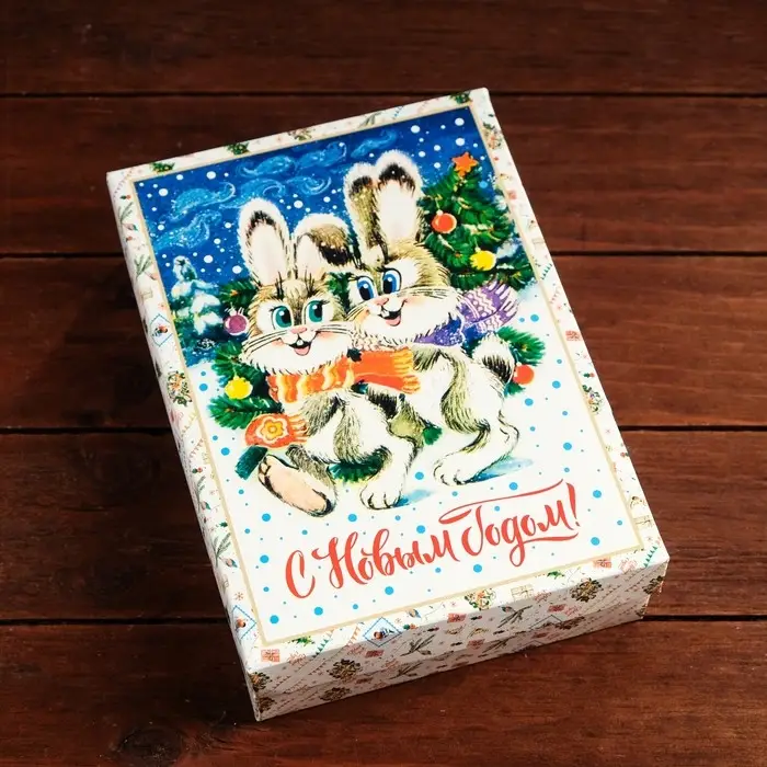 Коробка сборная крышка - дно, «Зайки», 21×15×5.7 см
