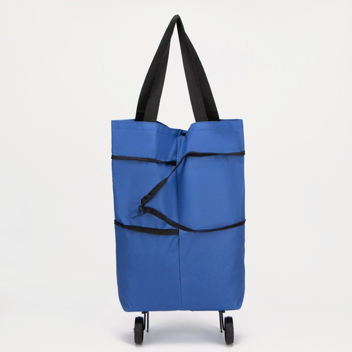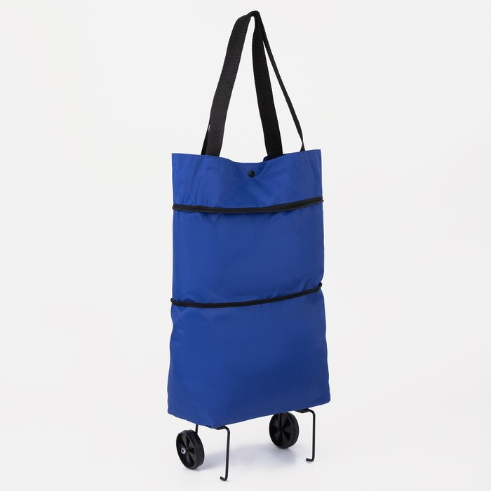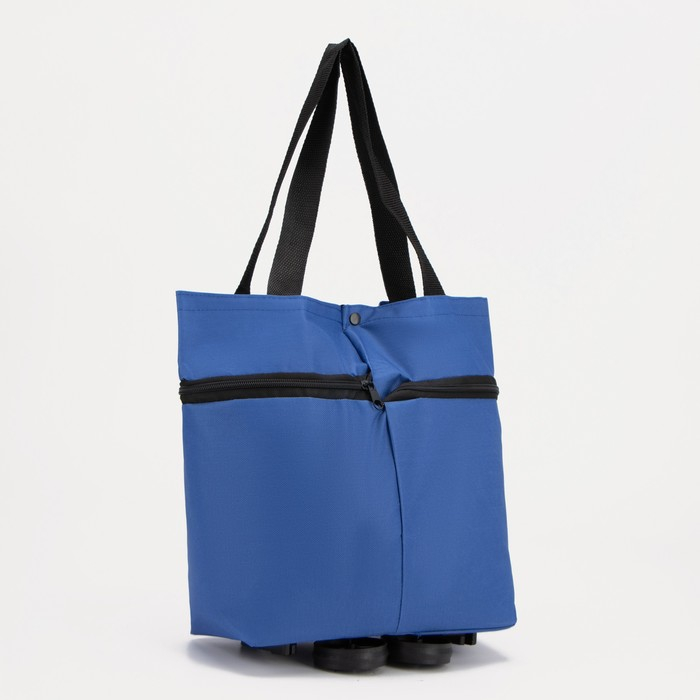 Сумка хозяйственная складная на 2х колёсах, на кнопке, цвет синий