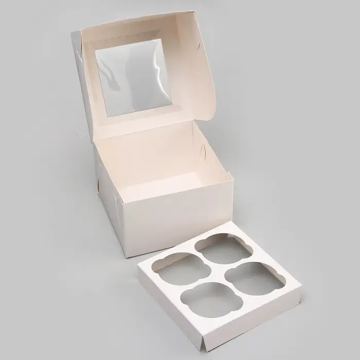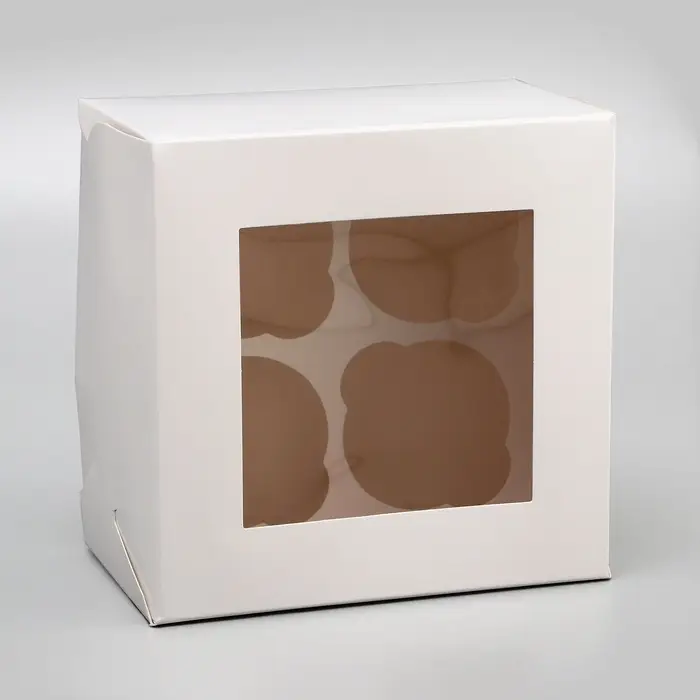 Коробка для 4 капкейка с окном, белая, 16×16×10 см
