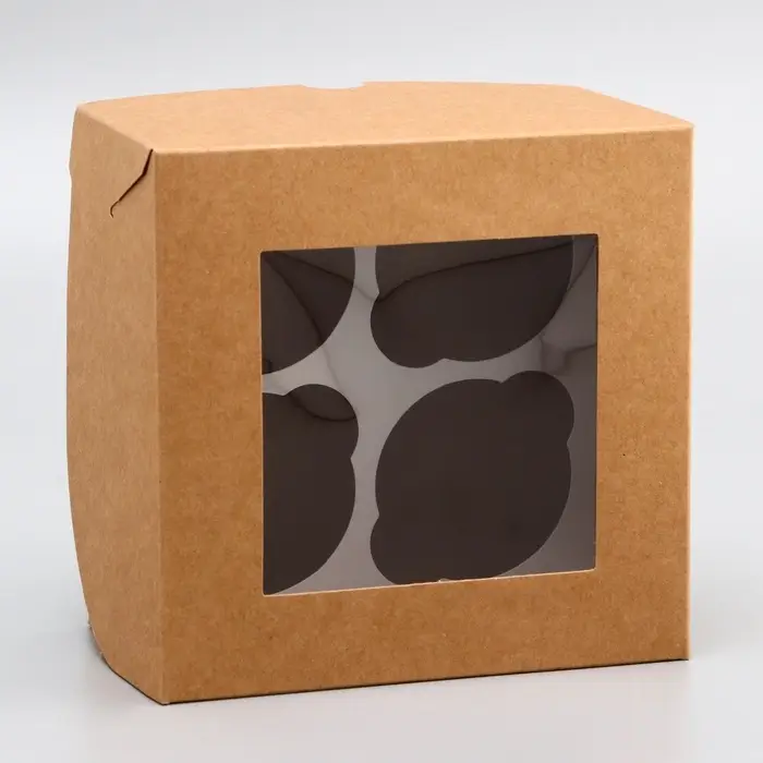 Коробка для 6 капкейков с окном, крафт, 25 х 17 х 10 см