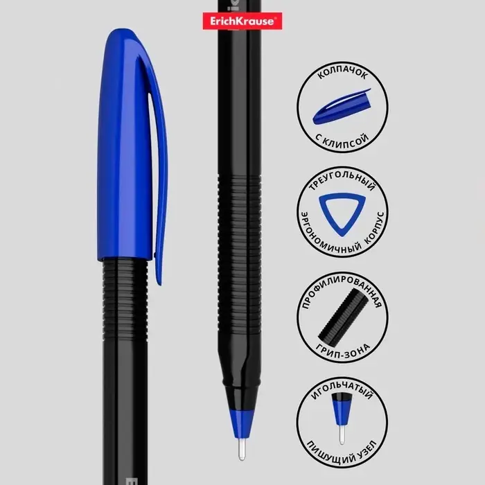 - Ручка имеет непрозрачный черный корпус с удобной профилированной грип-зоной и вентилируемый колпачок.