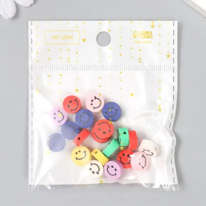 Бусины для творчества PVC "Смайл на круге" цветные набор 20 шт 1х1х1 см
