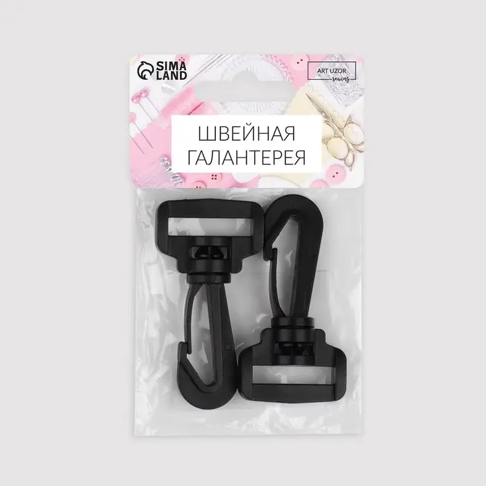 Карабин пластиковый, нагрузка до 35 кг, 33×64 мм / 25×8 мм, 2 шт., чёрный