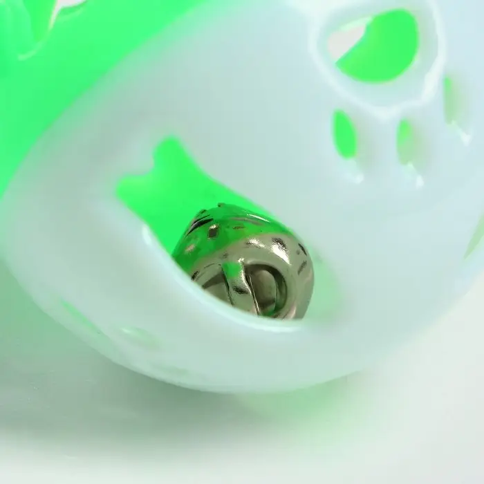 Шарик для кошек с бубенчиком "Рыбки и лапки", 3,8 см, белый/зелёный