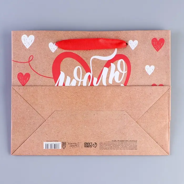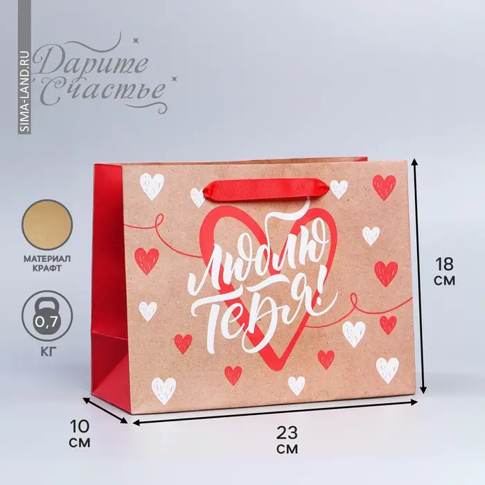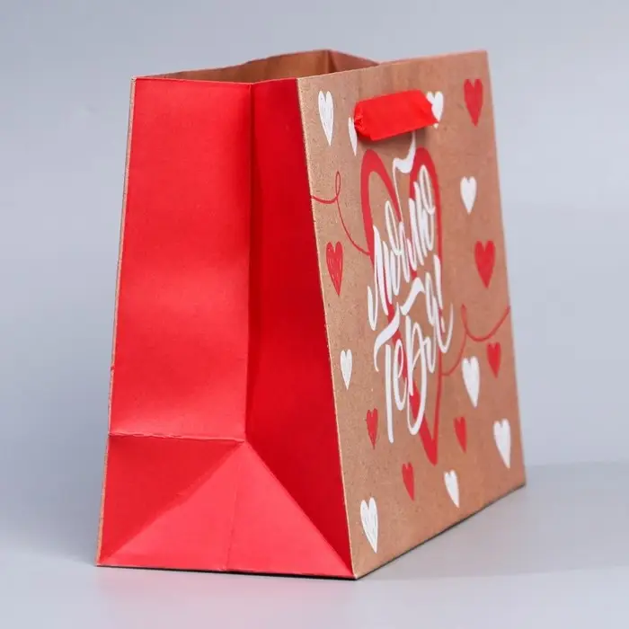 Пакет подарочный крафтовый, упаковка, «Люблю тебя», MS 18 х 23 х 8 см