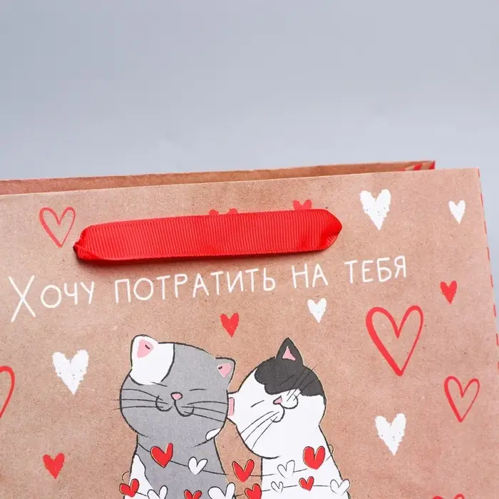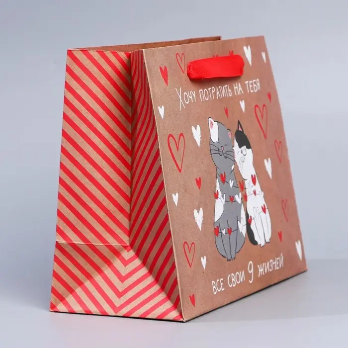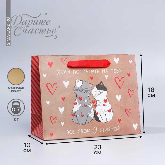 Пакет подарочный крафтовый, упаковка, «Потрачу девять жизней», MS 18 х 23 х 8 см