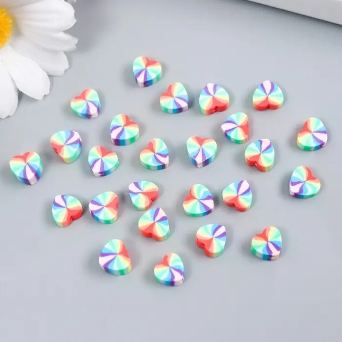 Набор бусин для рукоделия и плетения «Арт Узор. Сердечки радуга», 25 шт., PVC, 0.5×1×1 см