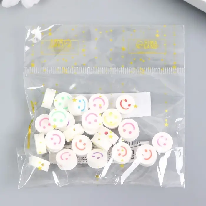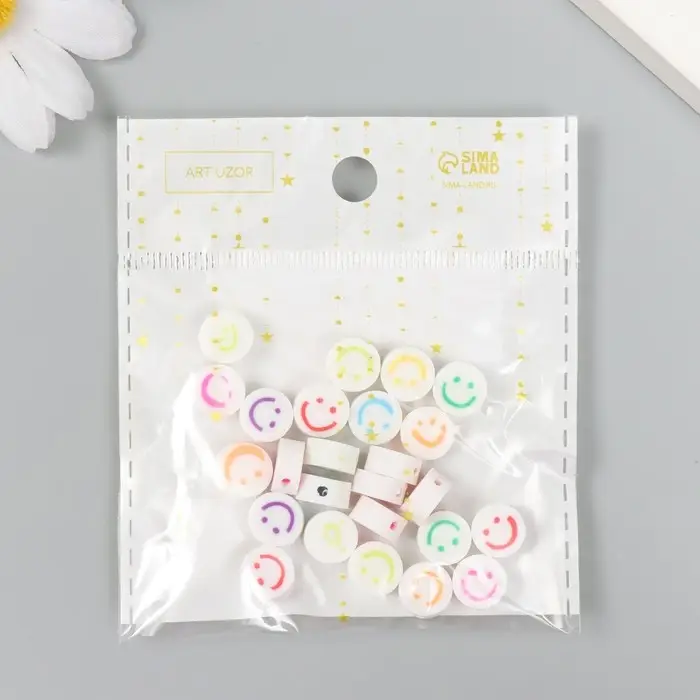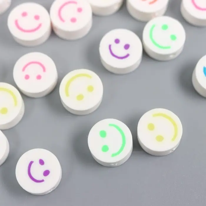 Бусины для творчества PVC "Смайл на белом" набор 25 шт 0,5х0,9х0,9 см