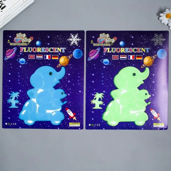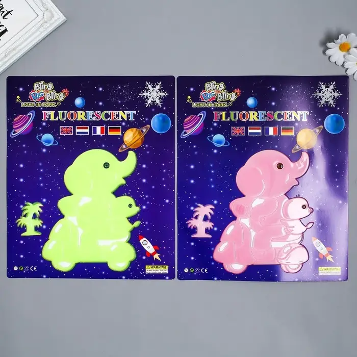 Наклейка фосфорная "Слонята на мопеде" с клеевыми подушечками набор 2 шт МИКС 29,5х25 см