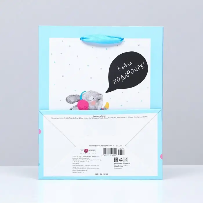 Пакет подарочный «Зайчик с пожеланиями» , 18×22.3×10 см