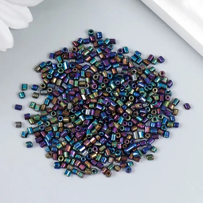 Бисер стекло 12/0 "Цилиндр. Синий меланж. Металлик" 10 гр