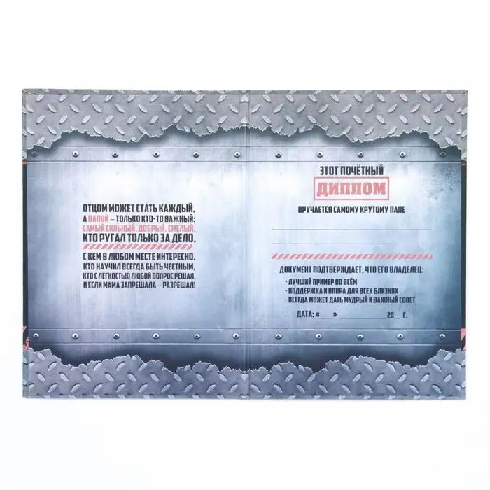 Диплом-книжка «Папа-это вам не мама» 22×15 см