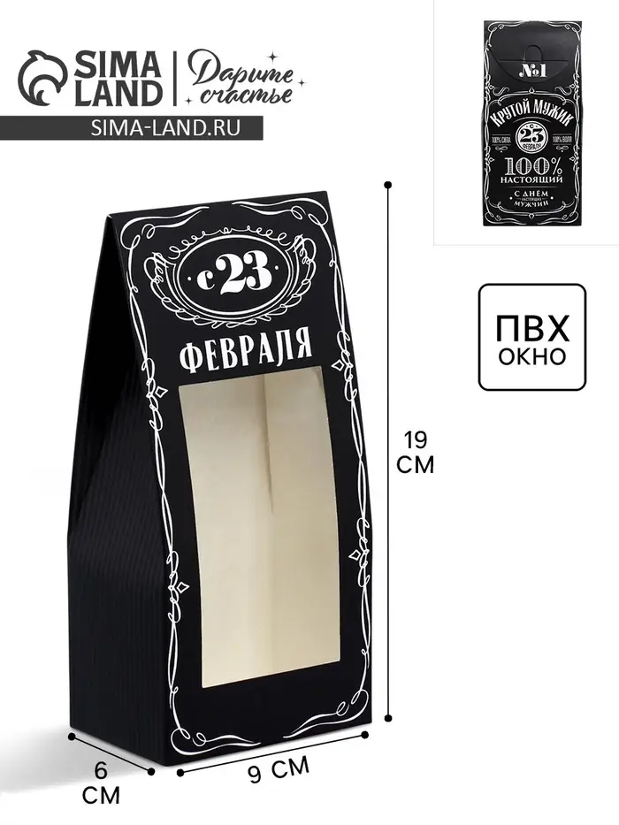 Коробка кондитерская складная, упаковка «23 февраля», 9 х 19 х 6 см