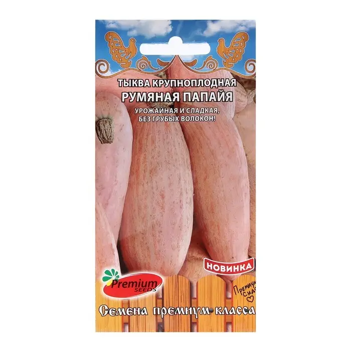 Среднеспелый (от всходов до созревания 93-105 дней) универсальный, длинноплетистый, розовоплодный сорт. Необычные по форме плоды длиной до 50 см и массой 4 - 6 кг, на плодородных почвах до 10-15кг. Мякоть плотная, оранжевая, сладкая, практически без волокон. Используется для приготовления супов, каш, соков, цукатов, детского и диетического питания, отлично подходит для заморозки.