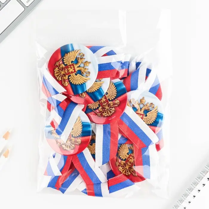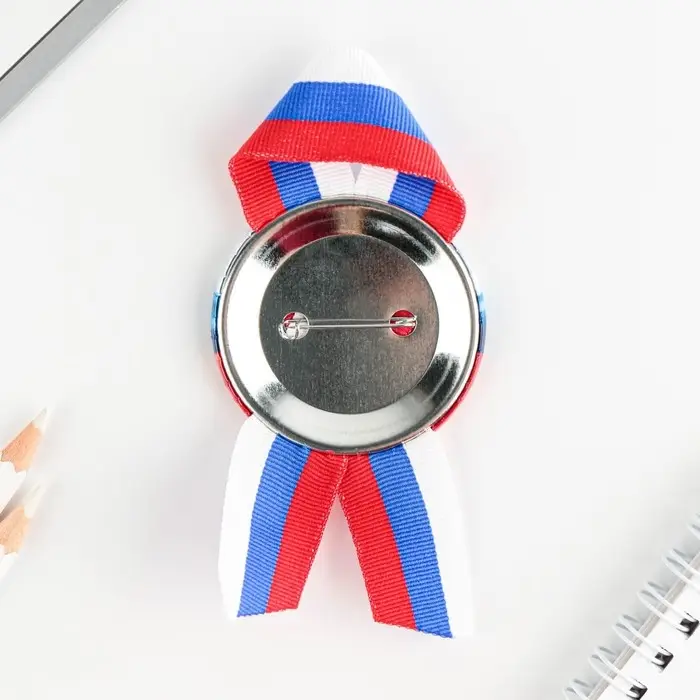Значок закатной с лентой «Герб», триколор, d=56 мм