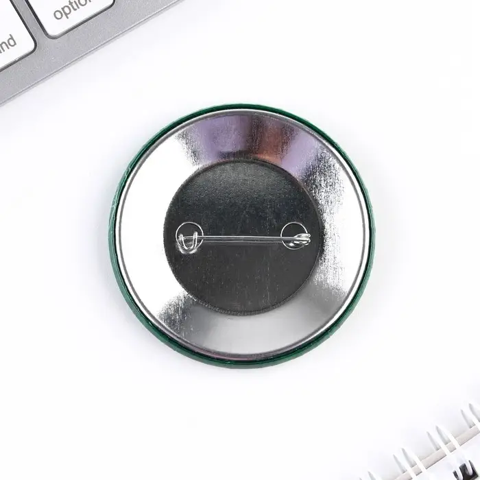 Закатной значок - это металлическая основа круглой формы с дизайном.