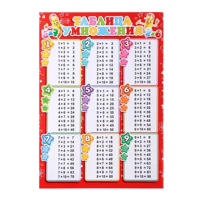 Плакат «Таблица умножения», красный фон, 21.6×30.3 см