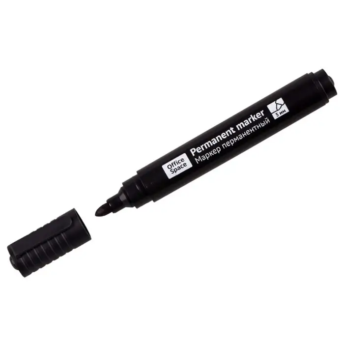 Маркер перманентный 3.0 мм, OfficeSpace "8004А, пулевидный, черный