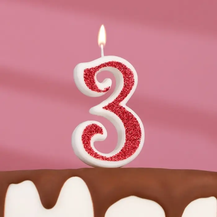 Свеча в торт на шпажке «Рубиновая коллекция», цифра 3, 5.2 см, рубиновая