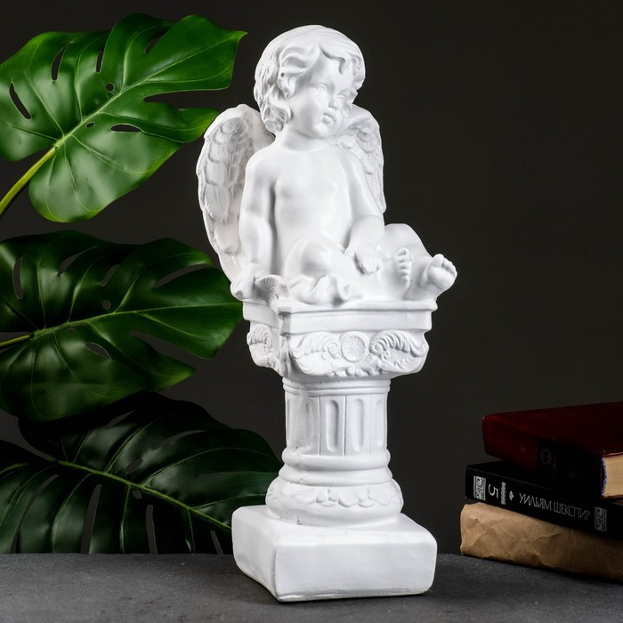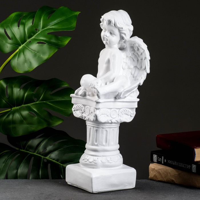 Фигура гипс «Ангел на пьедестале», белый, 15×15×42 см
