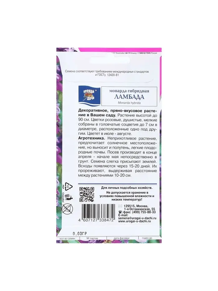 Семена цветов Монарда гибридная "Ламбада", 0,03 г