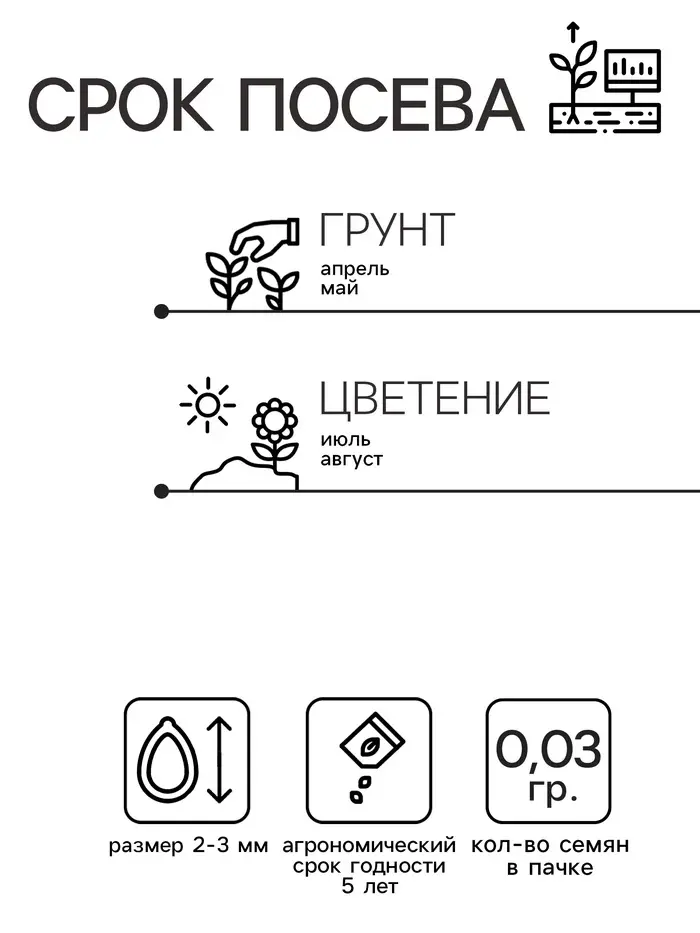 Неприхотливое растение, предпочитает солнечное местоположение, но выносит и полутень, легкие плодородные почвы. Посев производят в конце апреля - начале мая непосредственно в грунт. Семена слегка присыпают землей. Всходы появляются через 15-20 дней. Их прореживают, выдерживая расстояние между растениями 10-20 см.