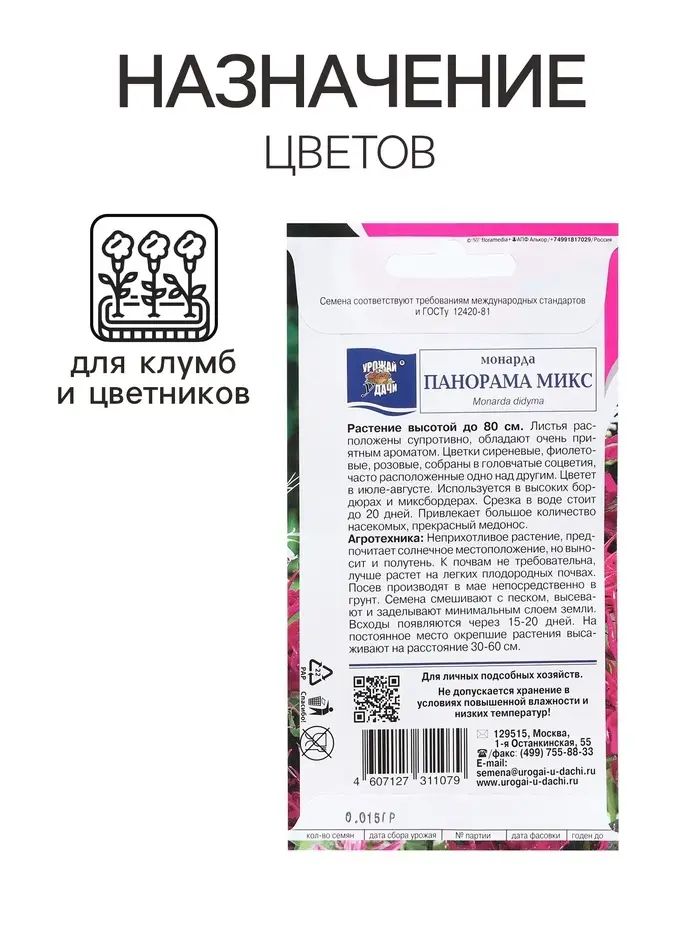 Семена цветов Монарда "Панорама Микс", 0,015 г