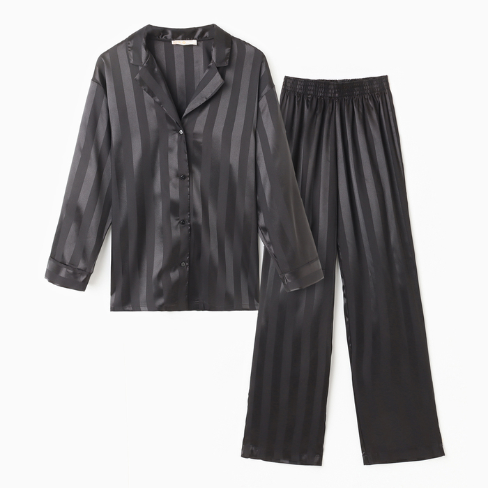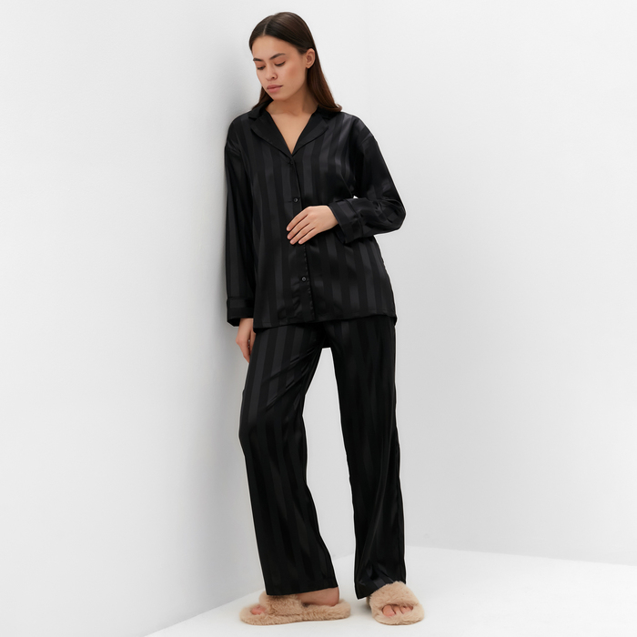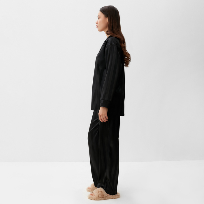Пижама женская (рубашка, брюки) KAFTAN "Полоска", черный, размер 48-50