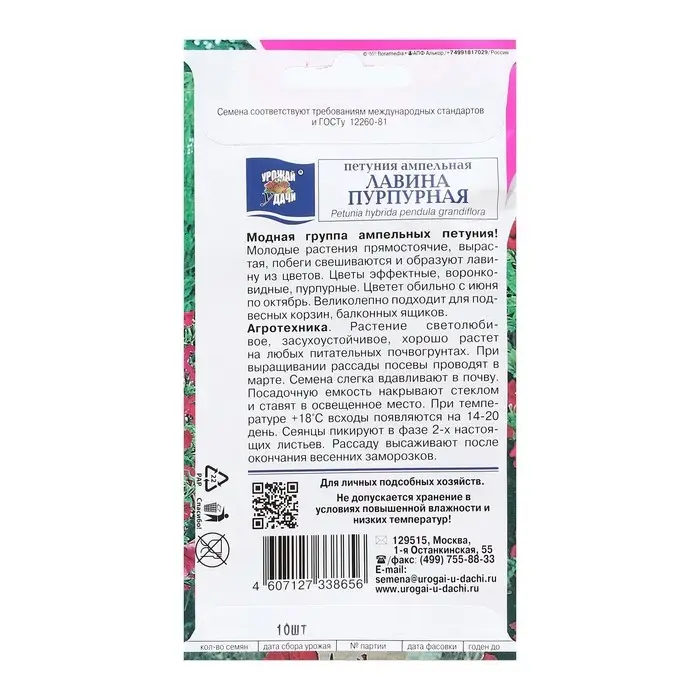 Семена цветов Петуния ампельная "Лавина Пурпурная F1", 0,01г. в амп.
